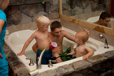 This is how we found jax after looking away for like maybe 30 seconds. I can't say i didn't see it coming, but it was a HUGE mess. Good thing we werent really camping and could go wash the cloths later that night. That didn't stop jax from getting a pretty severe cold shower in the large fresh water spicket directly afterward. Don't worry, we let him play for awhile in his nasty puddle, cause i mean, the damage was done. No reason to stop the child when he will play by himself for a bit...But then he started drinking the water. It was irrigation water. I kind of really hate that campground for a number of reasons...that is one. There were puddle like lake things around alll the trees in the campground--the spickets CONSTANTLY just ran water to the tree's unless you ask specifically to have them turned off in your site. DUMB idea if you want kids under 4 at your camp ground NOT to get giardia. Ya, Jax might have that. what? yes, thanks stupid campground. (in the campgrounds defense--it was GEORGOUS down there...but that had way more to do with the location then the campground...lets be honest.) Anyway, ya, giardia. Jaxton's poop is progressivly getting more and more funky and frequent. In case you were wondering. I'm a little nervous about it...mostly because i DO NOT want to do a stool sample.
