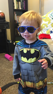 He is very into throwing balls (or throwing anything) and hitting things (or people.) I got moved to nursery so I get to take him early. It will be interesting to see him interact with the other kids. He is still really into "D" (Dat, Dad, Daddy, Dahth) words, but has expanded his vocabulary to sounds that sound like or similar to, what he wants to say. I even thing he has said "mmmummm" (mom??!) before! It's very cute. He just wants to be outside ALL THE TIME. LOVES to be with other little kids. LOVES to wrestle and be played with. LOVES his brothers. He is super silly and funny a fun. I love to play with him. He gives great (very open) mouth kisses. I really enjoy those. :) He constantly looks like a wild child because his hair is this orang-y color and always disheveled and half curled with a high hair-line and huge teeth. I can't bring myself to cut his hair, though I know it would really help him look more groomed. I wonder when I will be able to cut it. No time in the near future...! He's my wild man!